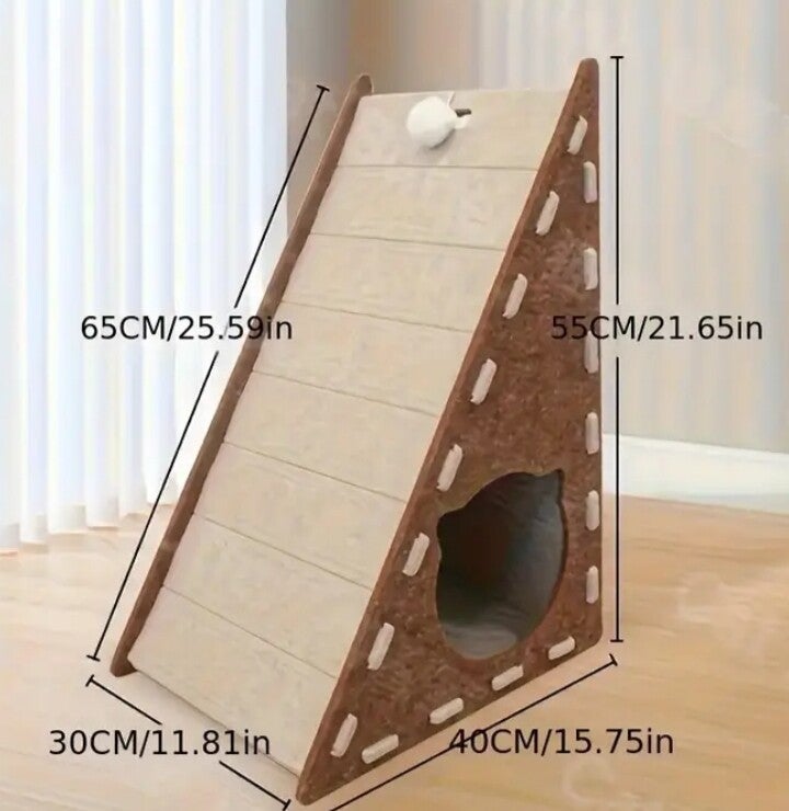 PRECIOSA ALFONMBRA RASCADORA EN FORMA DE ESCALERA,DOS COLORES,CON CASITA ESCONDITE